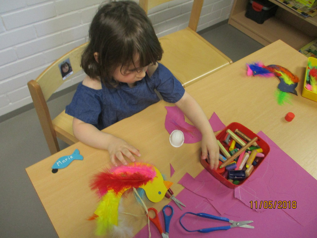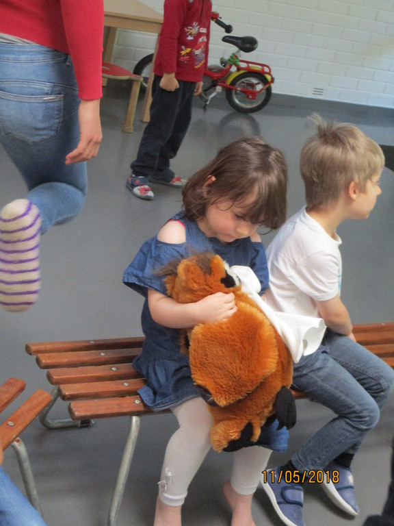 Die Drei- und Fünfjährigen aus dem Wasserfloh und dem Sterntaler-Kindergarten singen, zwitschern, musizieren und schauspielern zum bekannten Lied "Die Vogelhochzeit". Jeder hat eine Rolle mit einem Kostüm oder einem Gegenstand, der im Lied genannt wird.