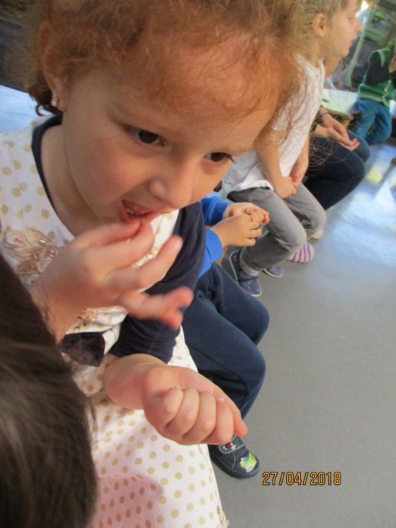Zum Schluß gibt es für alle Darsteller "Vogelfutter" (Sonnebblumenkerne, Kürbiskerne....) und natürlich wird die Aufführung auch einem Publikum vorgeführt: Den großen Wackelzahnkindern und den Eltern und Gästen beim Sommerfest. Vidirallala, Vidirallala, Vidirallalalala....