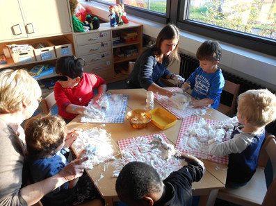 Das gemeinsame Tun in der Zwergengruppe unterstützt den Kontakt der Kinder untereinander und stärkt das Sozialverhalten.