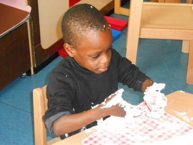 Weil wir in der Winterzeit leider oft vergeblich auf den Schnee warten, besorgen wir "Ersatz" und schaffen ein sinnliches Erlebnis mit Eiswürfeln und Rasierschaum...